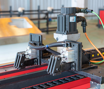 明州智能提出從前面自動拉料,以后 卡為原點計算切割,標準雙卡機的最 后一斷后卡到槍頭的尺寸小于產品成 品尺寸時即可算做成品,實現“零” 尾料,有效提高材料利用率與加工效 率。